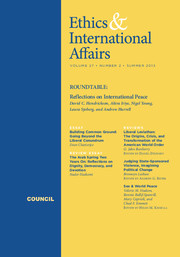 International Peace: One Hundred Years On, Ethics and International Affairs, Summer 2013. (Lead essay in symposium marking 100th anniversary of Carnegie Institute for Ethics and International Affairs)