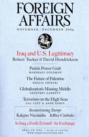 The Sources of American Legitimacy, (with Robert W. Tucker), Foreign Affairs (November/December 2004).