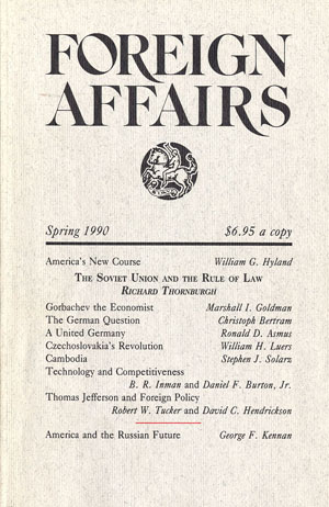 Thomas Jefferson and American Foreign Policy, (with Robert W. Tucker), Foreign Affairs (Spring 1990).