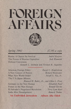 The Renovation of American Foreign Policy, Foreign Affairs Spring 1992.